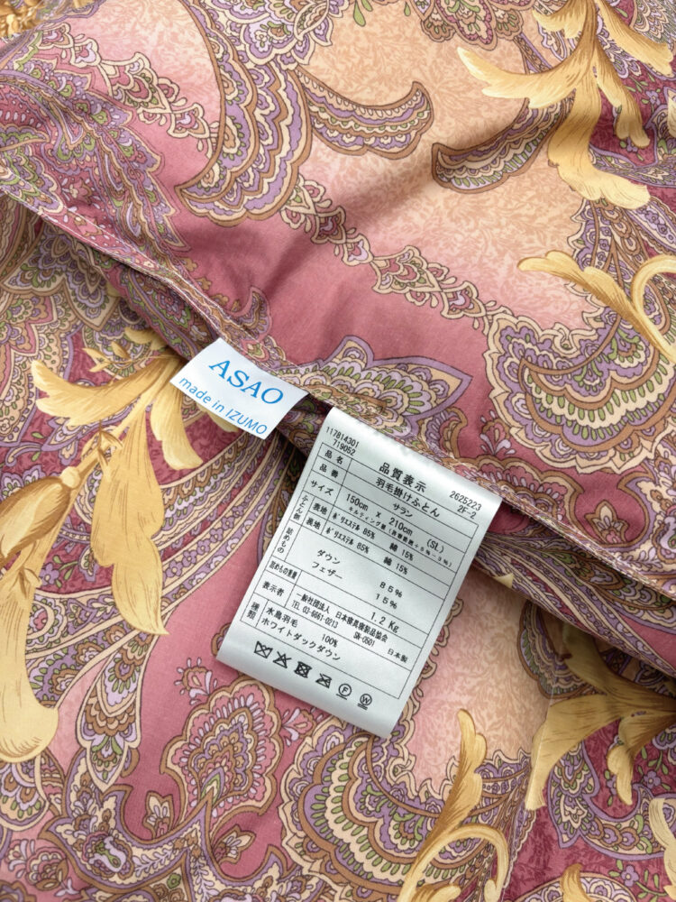 羽毛ふとん 掛ふとん ゴールドラベル saran 羽毛ふとん 掛ふとん ゴールドラベル saran ▶商品のお問合せ ▶LINEでお問合せ ※商品番号をお知らせ下さい 商品番号:251009-01umo-saran 【シングル】 羽毛ふとん ニューゴールドラベル saran 在庫状態 : 在庫有り ¥30,000(税込) ニューゴールドラベルの羽毛掛布団。立体キルト。おすすめ品です。 【組成】 側生地:ポリエステル85% 綿15% ※ダブルサイズはピンクのみです。 ホワイトダウン85% 立体キルト 日本製 充填量 1.2kg カラー 選択してください ピンク ブルー 数量 ▶商品のお問合せ ▶LINEでお問合せ ※商品番号をお知らせ下さい 商品番号:251009-01umo-saran 【ダブル】羽毛ふとん ニューゴールドラベル T2578FD90 在庫状態 : 在庫有り ¥46,200(税込) ニューゴールドラベルの羽毛掛布団。立体キルト。おすすめ品です。 【組成】 側生地:ポリエステル85% 綿15% ※ダブルサイズはピンクのみです。 ホワイトダウン85% 立体キルト 日本製 充填量 1.2kg カラー 選択してください ピンク ブルー 数量 トップ » 商品 » トップ » 商品 » 掛ふとん関連商品 » 羽毛布団 » トップ » 商品 » 掛ふとん関連商品 » 羽毛布団 » シングルサイズ » トップ » 商品 » 掛ふとん関連商品 » 羽毛布団 » ダブルサイズ »